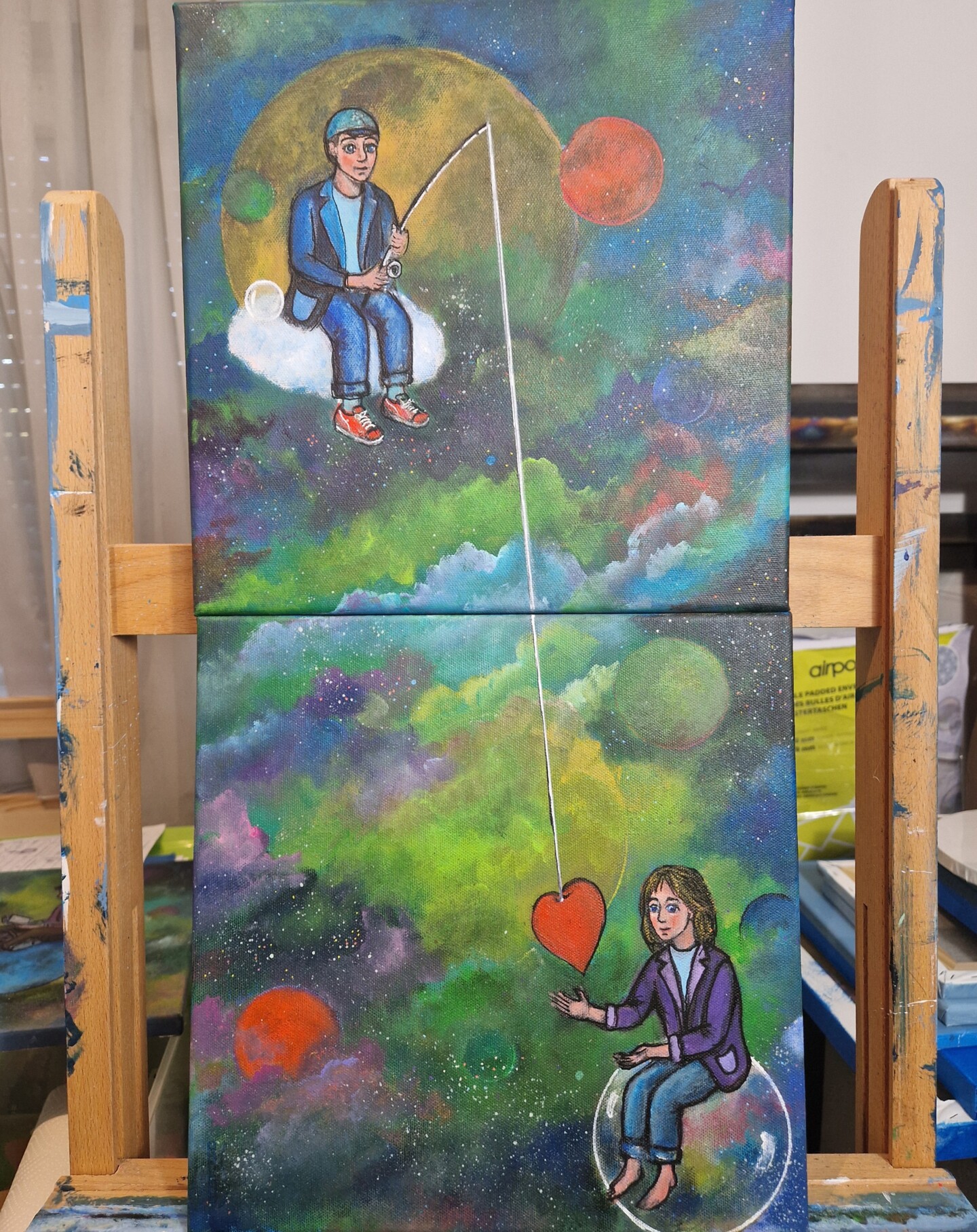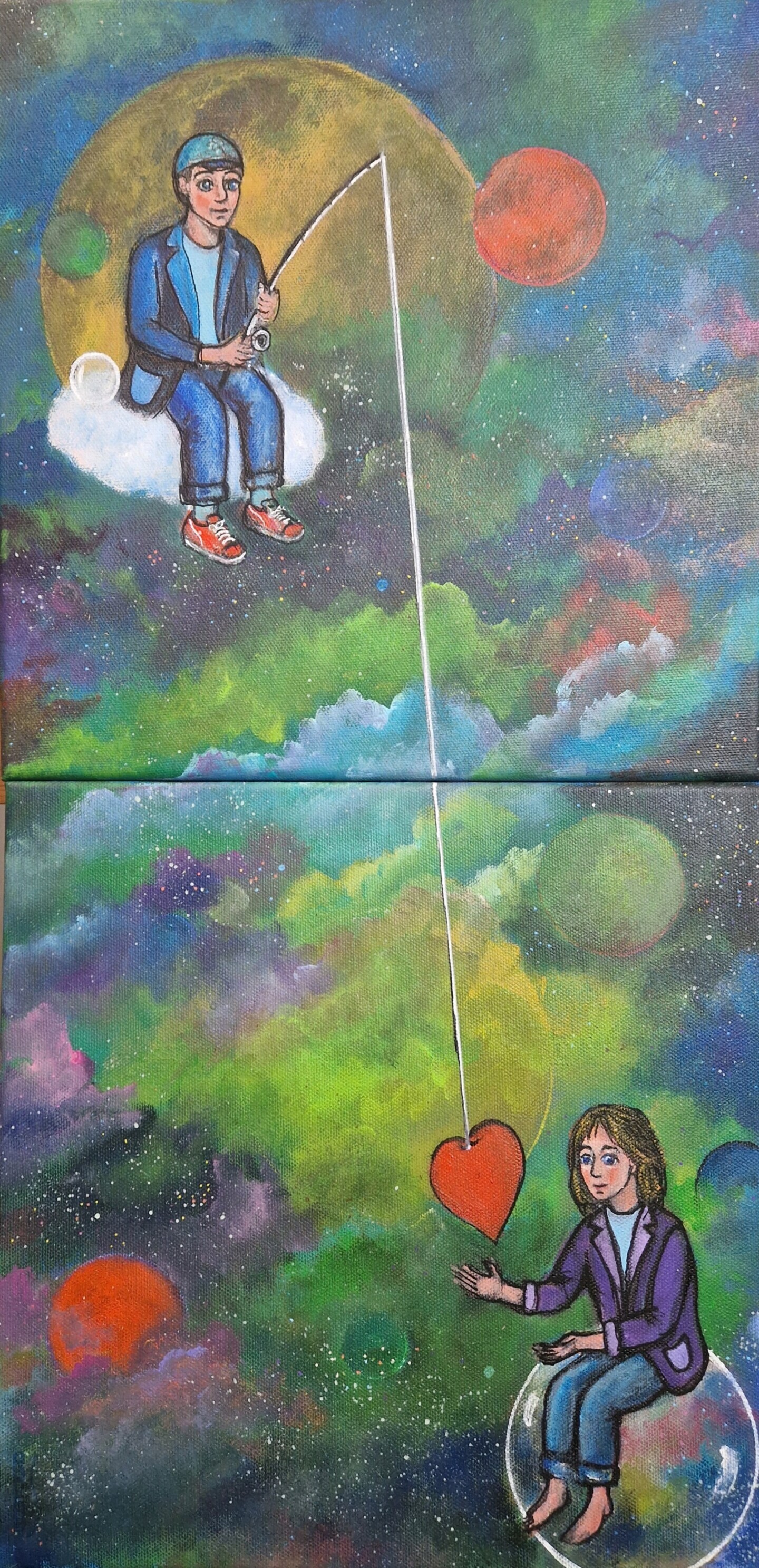 60x30 cm ~ Peinture, Acrylique, Crayon, Fusain, Marqueur